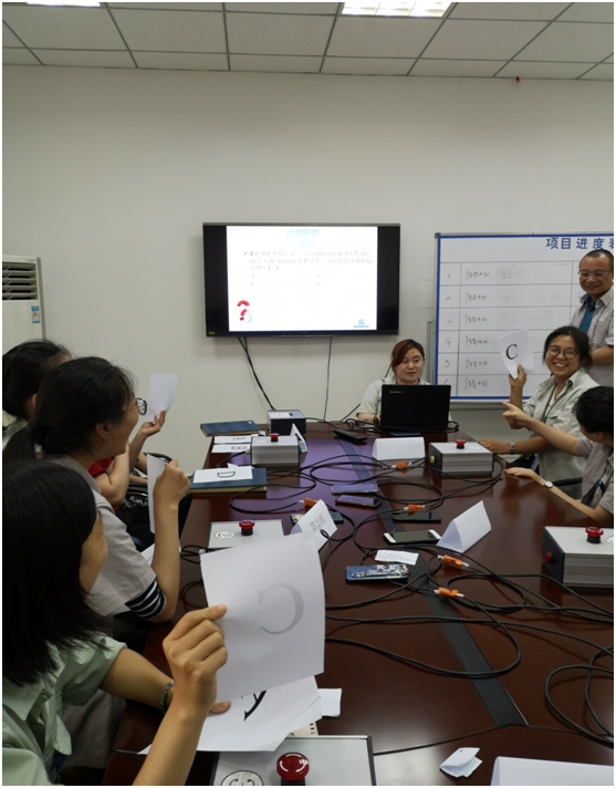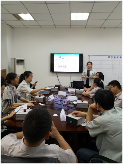 本次比賽分為“過(guò)關(guān)斬將(必答題)”、“速度與激情(搶答題)”、“一答定乾坤(風(fēng)險題)”三個(gè)環(huán)節,每一環(huán)節題目均以應知應會(huì )知識為主。比賽籌備小組在賽前認真篩選題目,比賽題目來(lái)源于生活常識、安全消防環(huán)境知識、公司相關(guān)管理制度等,難易結合、循序漸進(jìn)。比賽中的搶答器為員工利用現場(chǎng)物資自制,增加了比賽的趣味性。
